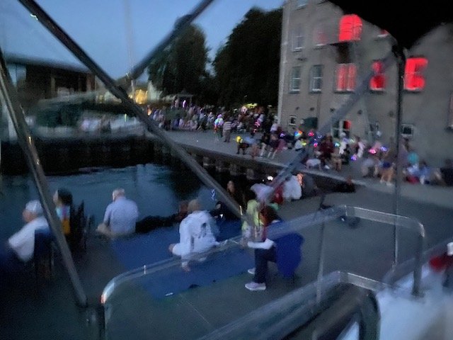 The folks from the town gathered along the dock to watch the fireworks —we really loved this stop.